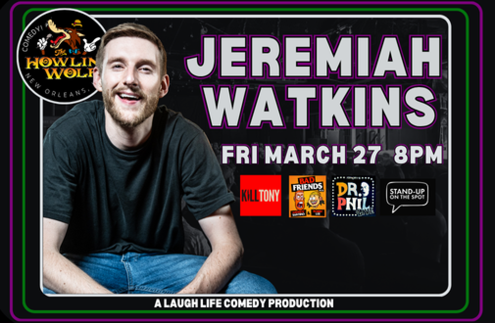 Jeremiah Watkins is heralded as the comedian for making Judd Apatow fall in love with comedy again, and that’s a direct quote from Judd himself! His debut 1 hour standup special Jeremiah Watkins: Family Reunion is streaming now on Amazon Prime and his second hour special DADDY is streaming now on Youtube. You can hear him as the voice of the iconic role of The Joker on DC Superhero Girls and you can see him weekly as the co-host of the Trailer Tales Podcast. His hit series Stand-Up On The Spot continues to receive viral attention as well as his numerous sketches online that he also directs and writes. Other credits include Carpool Karaoke, Roast Battle, Lights Out with David Spade, Netflix’s Historical Roasts, Jimmy Kimmel Live, HBO’s Crashing, Nickelodeon’s The Casagrandes, Dr. Phil LIVE & more! Jeremiah’s off-the-cuff and physical standup style guarantee you a memorable show experience like you’ve never seen before!