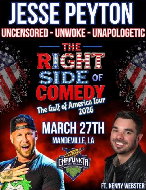 “The Right Side of Comedy" is hosted and produced by viral comedy sensation, Jesse Peyton. Jesse is a groundbreaking, openly-conservative comedian who boldly embraces humor without the constraints of political correctness. Premiering in 2025, this Uncensored, Unwoke Unapologetic Stand-up Comedy Show provides a platform for some of the edgiest comedians in the conservative comedy scene challenging mainstream narratives. Each show spotlights seasoned comedians who aren't afraid to tackle hot-button issues, poke fun at cultural trends, and share their unique perspectives on current events—all with a healthy dose of laughter. From political satire to social commentary, "The Right Side of Comedy" aims to connect with audiences who appreciate humor that reflects their values and beliefs. The show promotes laughter at sensitive subjects while inviting audiences to engage with topics often considered taboo or controversial in today’s comedy landscape. With a commitment to hilarity, and a no-holds-barred approach, "Right Side of Comedy" promises to deliver a refreshing alternative to typical comedy fare.